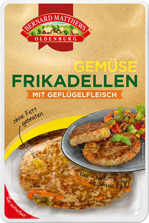 Die etwas andere Frikadelle erhalten Sie mit unserer Gemüse-Frikadelle mit Geflügelfleisch. Die Kombination aus zartem Gemüse und leckerem Geflügelfleisch macht unsere Gemüse-Frikadelle mit Geflügelfleisch zu einer tollen Alternative für die bewusste Ernährung. Da wir auch diese Frikadelle ohne Fett braten, liegt der Fettgehalt bei nur 10% und macht unsere Gemüse-Frikadelle mit Geflügelfleisch so sowohl heiß als auch kalt zu einem Genuss. Durch die einfache und schnelle Zubereitung in der Pfanne und Mikrowelle eignen sie sich optimal zum Salat oder als Snack.