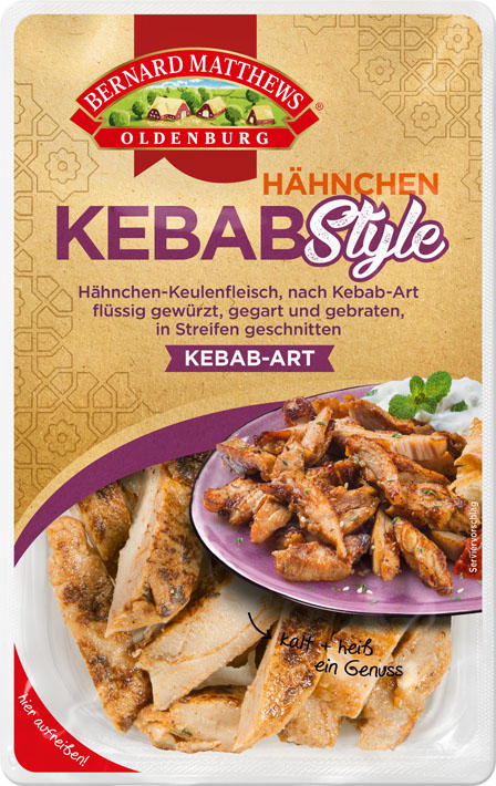 Schmecken Sie Orientalisch! Unser Hähnchen in Kebab Art mit einem würzig, aromatischen und leicht scharfen Geschmack sowie typisch orientalischen Gewürzen.